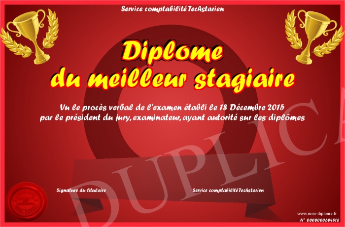 Envoyez par email votre Diplôme du meilleur stagiaire personalisé