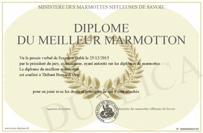 Envoyez par email votre diplôme du meilleur marmotton personalisé