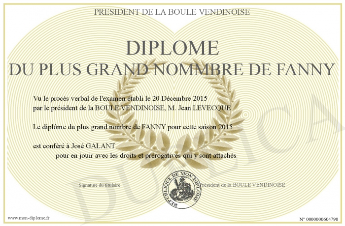 Envoyez par email votre Diplôme du plus grand nommbre de FANNY personalisé