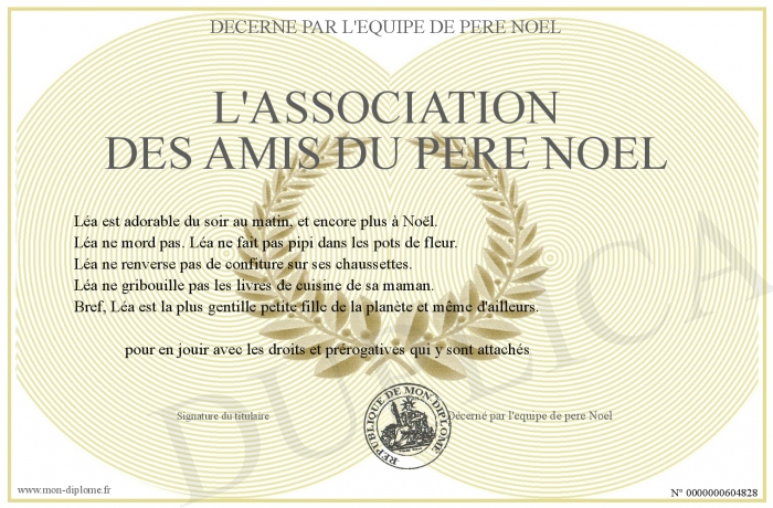 Envoyez par email votre l'Association des Amis du Père Noel personalisé