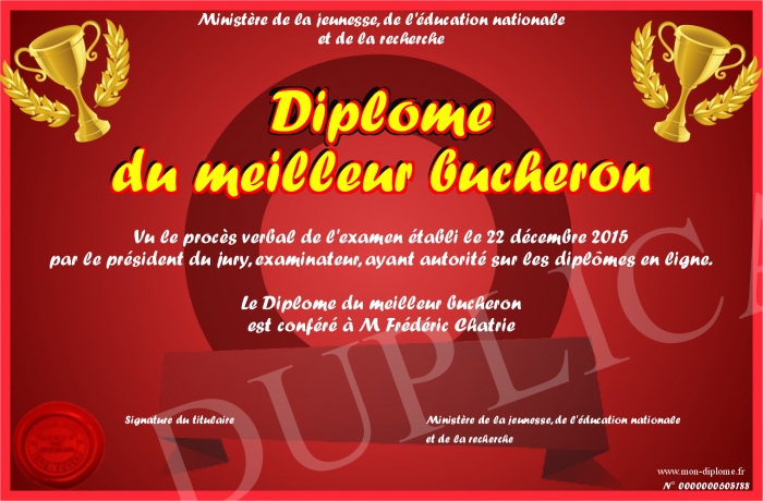 Envoyez par email votre Diplôme du meilleur bucheron personalisé