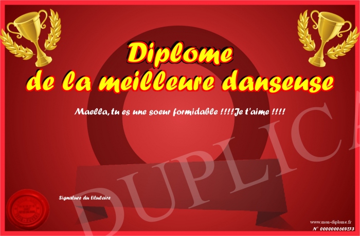 Envoyez par email votre Diplôme de la meilleure danseuse personalisé