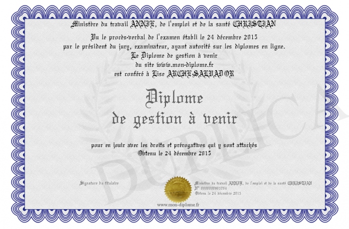 Envoyez par email votre Diplome de gestion à venir personalisé