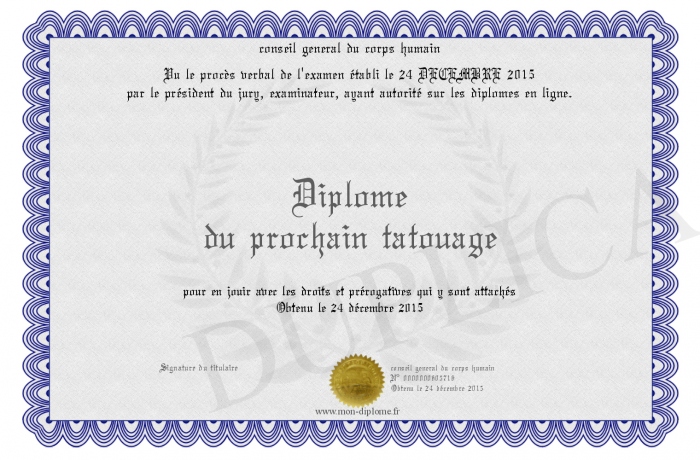 Envoyez par email votre Diplôme du prochain tatouage personalisé