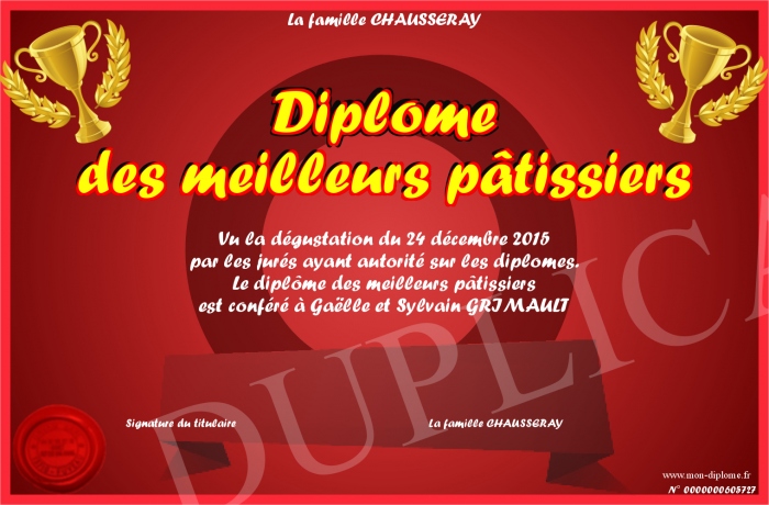 Envoyez par email votre Diplôme des meilleurs pâtissiers personalisé