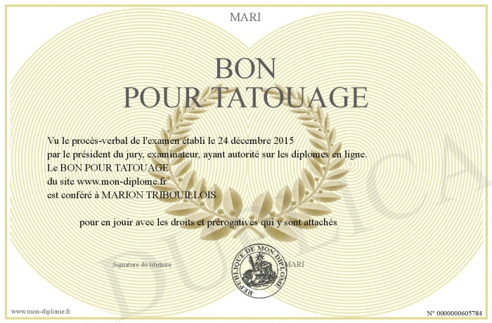 Envoyez par email votre BON POUR TATOUAGE personalisé