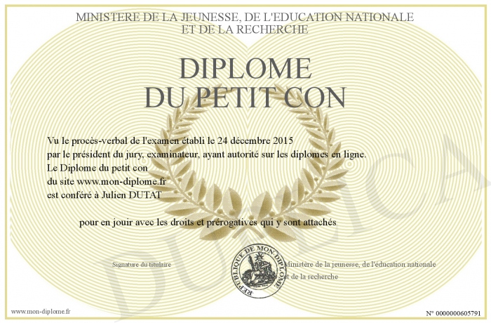 Envoyez par email votre Diplôme du petit con personalisé
