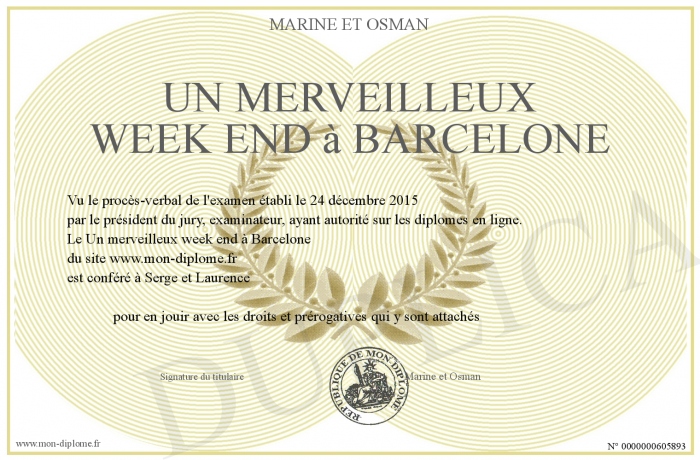 Envoyez par email votre Un merveilleux week end à Barcelone personalisé