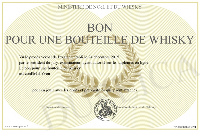 Envoyez par email votre bon pour une bouteille de whisky personalisé