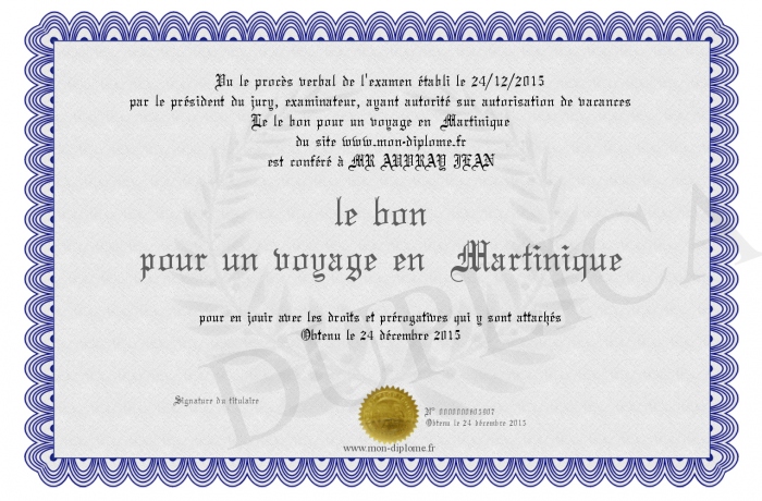 Envoyez par email votre le bon pour un voyage en Martinique personalisé