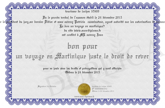 Envoyez par email votre bon pour un voyage en Martinique juste le droit de rever personalisé