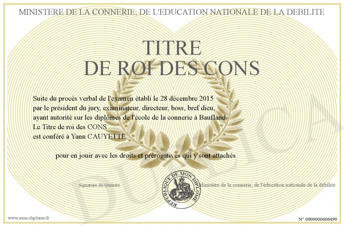 Envoyez par email votre Titre de roi des CONS personalisé