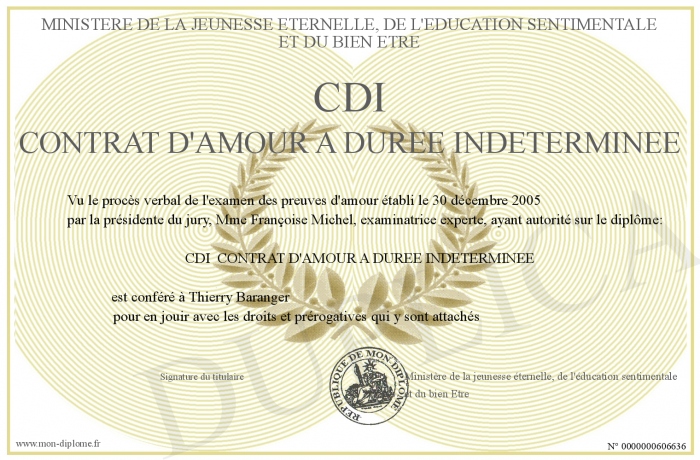 Envoyez par email votre CDI CONTRAT D'AMOUR A DUREE INDETERMINEE personalisé