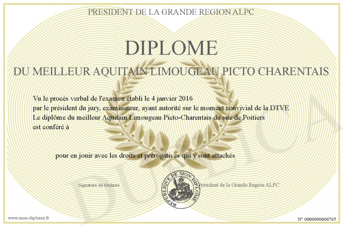 Envoyez par email votre Diplôme du meilleur Aquitain Limougeau Picto Charentais personalisé