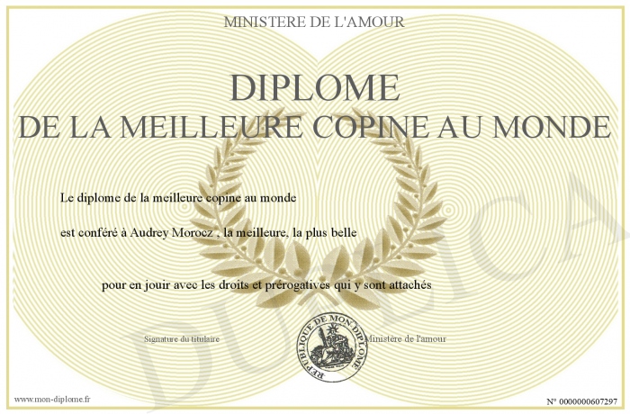 Envoyez par email votre diplome de la meilleure copine au monde personalisé