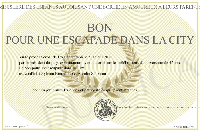 envoyé par le Ministère des Enfants autorisant une sortie en amoureux a leurs parents !