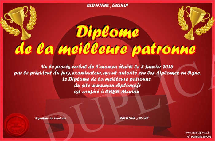 Envoyez par email votre Diplôme de la meilleure patronne personalisé