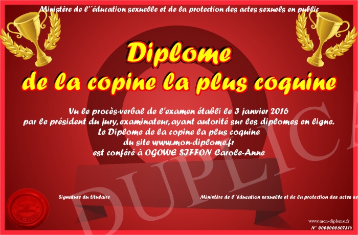 Envoyez par email votre Diplôme de la copine la plus coquine personalisé