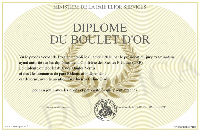 Envoyez par email votre DIPLOME DU BOULET D'OR personalisé