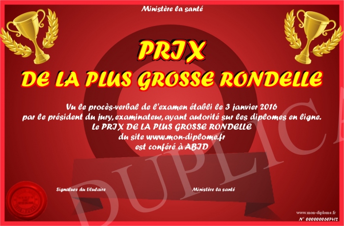 Envoyez par email votre PRIX DE LA PLUS GROSSE RONDELLE personalisé