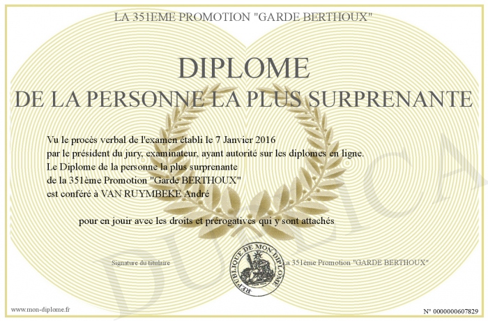 Envoyez par email votre Diplôme de la personne la plus surprenante personalisé