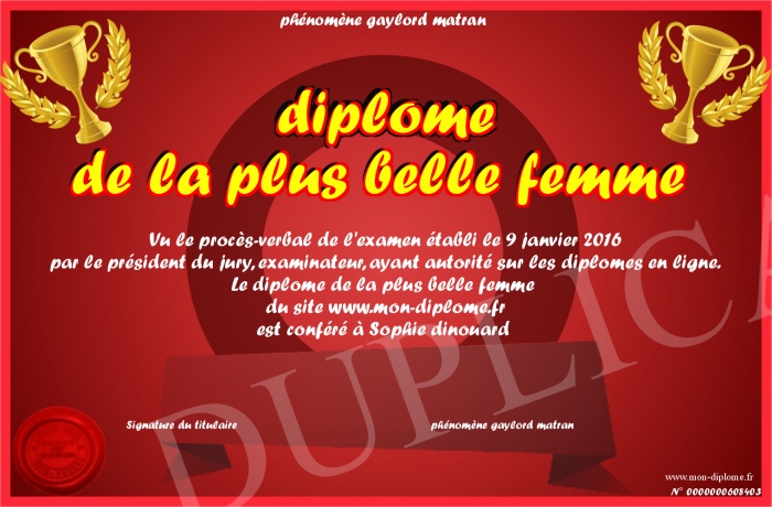 Envoyez par email votre diplôme de la plus belle femme personalisé