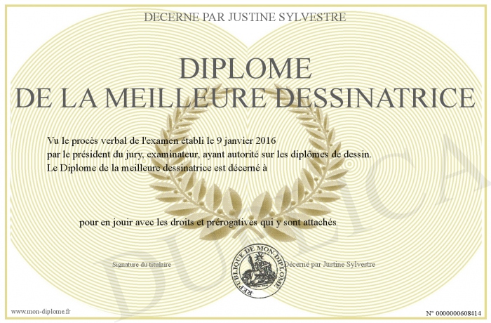 Envoyez par email votre Diplôme de la meilleure dessinatrice personalisé