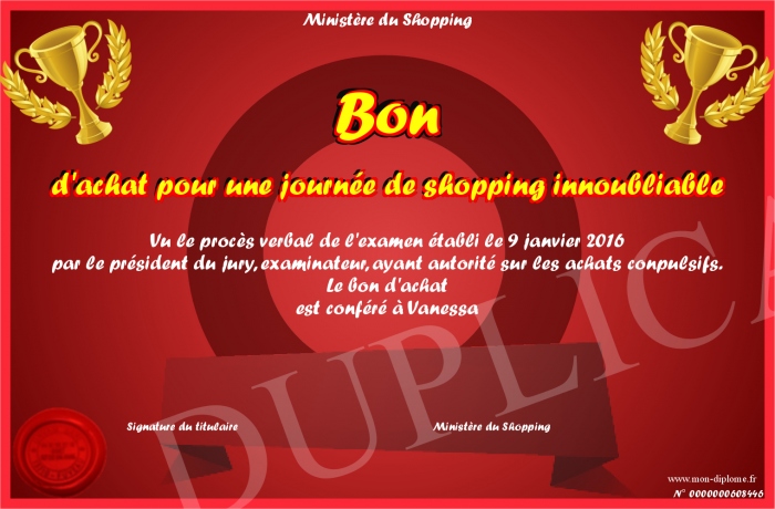 Envoyez par email votre Bon d'achat pour une journée de shopping innoubliable personalisé
