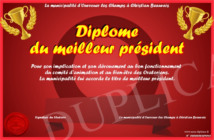 Envoyez par email votre Diplôme du meilleur président personalisé