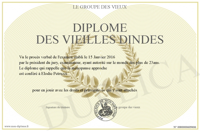 Envoyez par email votre Diplôme des vieilles dindes personalisé
