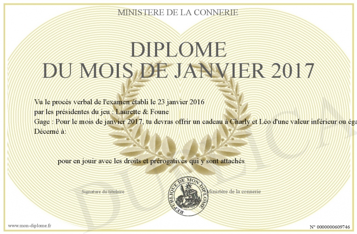 Envoyez par email votre Diplôme du mois de Janvier 2017 personalisé
