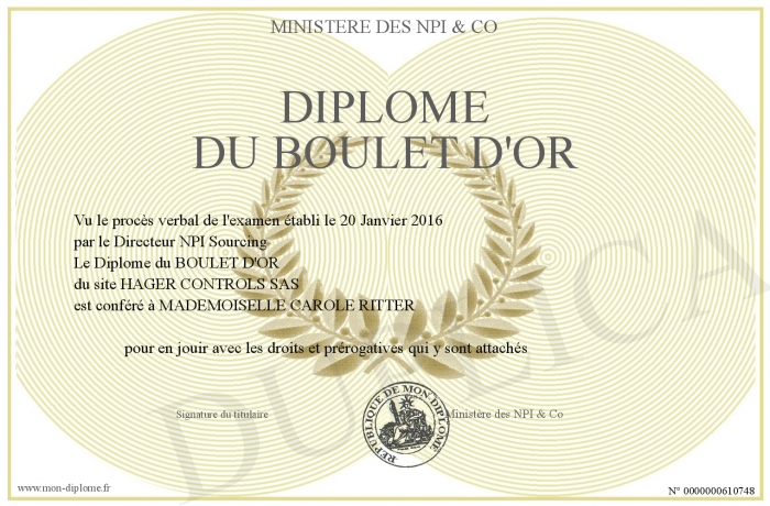 Envoyez par email votre Diplôme du BOULET D'OR personalisé