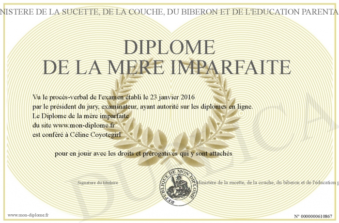 Envoyez par email votre Diplôme de la mère imparfaite personalisé