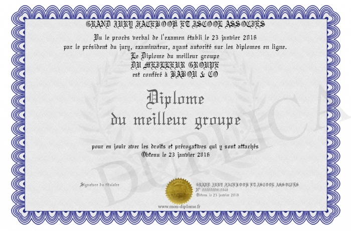 Envoyez par email votre Diplôme du meilleur groupe personalisé
