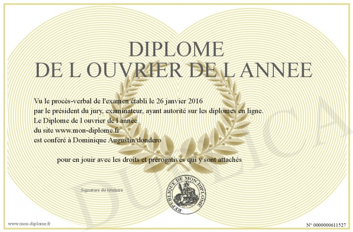 Envoyez par email votre Diplôme de l ouvrier de l année personalisé