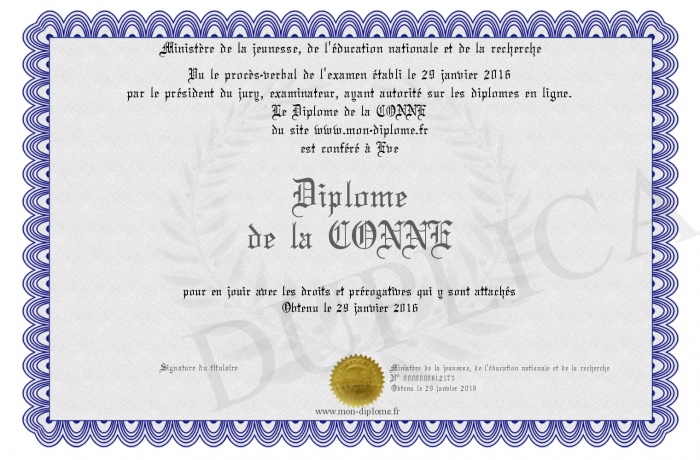 Envoyez par email votre Diplôme de la CONNE personalisé