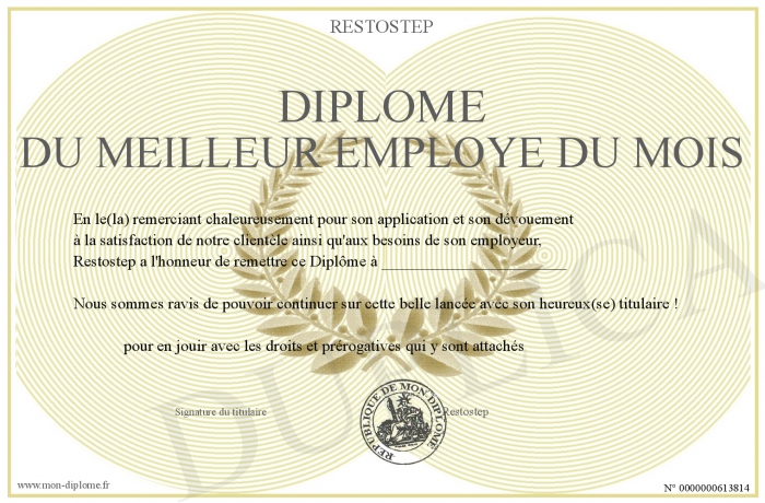 Envoyez par email votre Diplôme du meilleur employé du mois personalisé