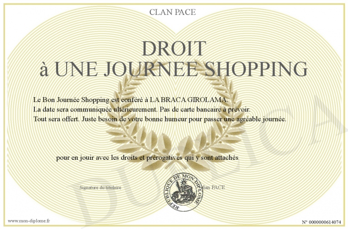 Envoyez par email votre Droit à une JOURNEE SHOPPING personalisé