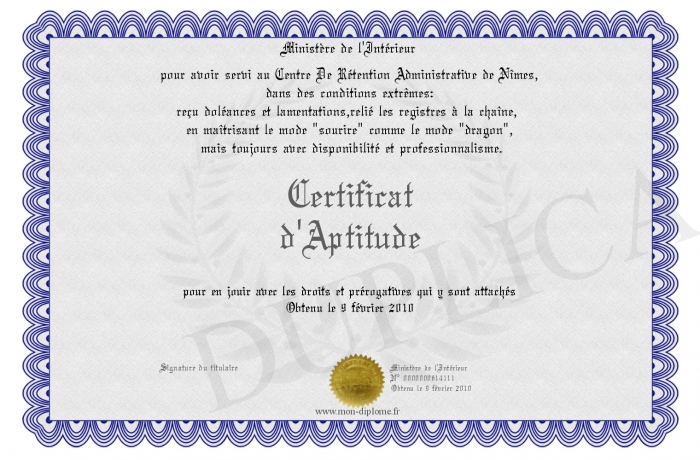 Envoyez par email votre Certificat d'Aptitude personalisé
