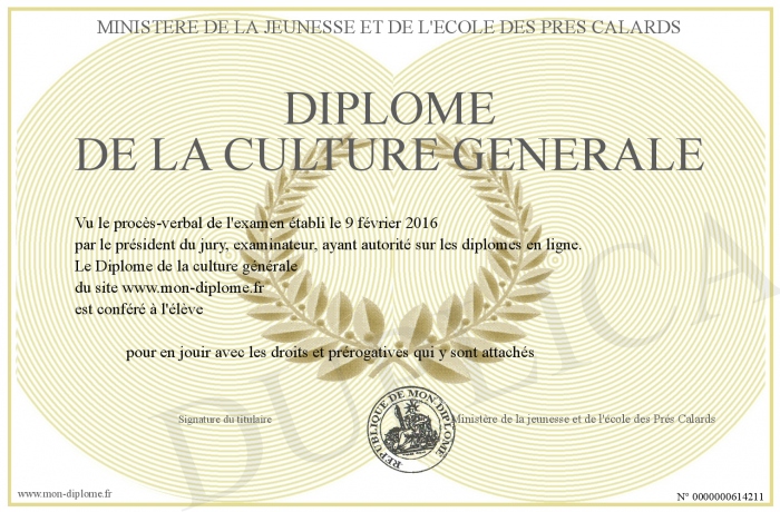 Envoyez par email votre Diplôme de la culture générale personalisé