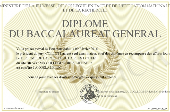 Envoyez par email votre Diplôme du baccalaureat général personalisé