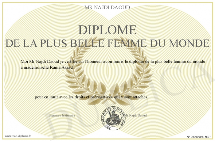 Envoyez par email votre Diplôme de la plus belle femme du monde personalisé