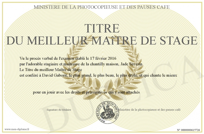Envoyez par email votre Titre du meilleur Maître de Stage personalisé