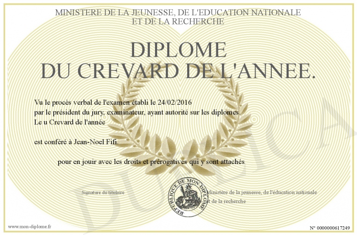 Envoyez par email votre Diplôme du Crevard de l'année. personalisé
