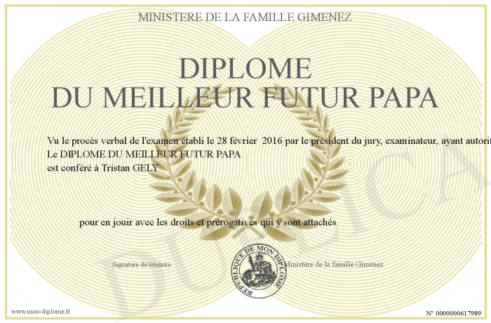 Envoyez par email votre diplome du meilleur futur papa personalisé