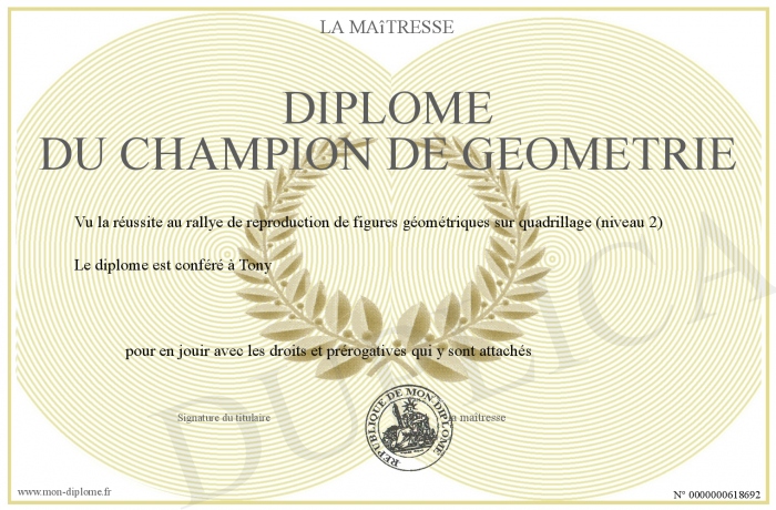 Envoyez par email votre Diplôme du champion de géométrie personalisé