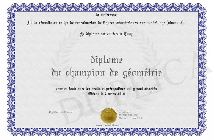 Envoyez par email votre diplome du champion de géométrie personalisé