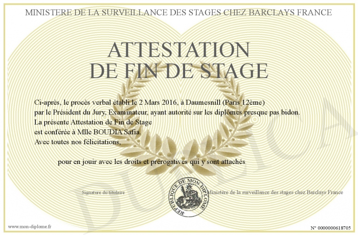 envoyé par le Ministère de la surveillance des stages chez Barclays France !
