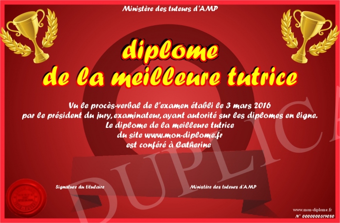 Envoyez par email votre diplôme de la meilleure tutrice personalisé