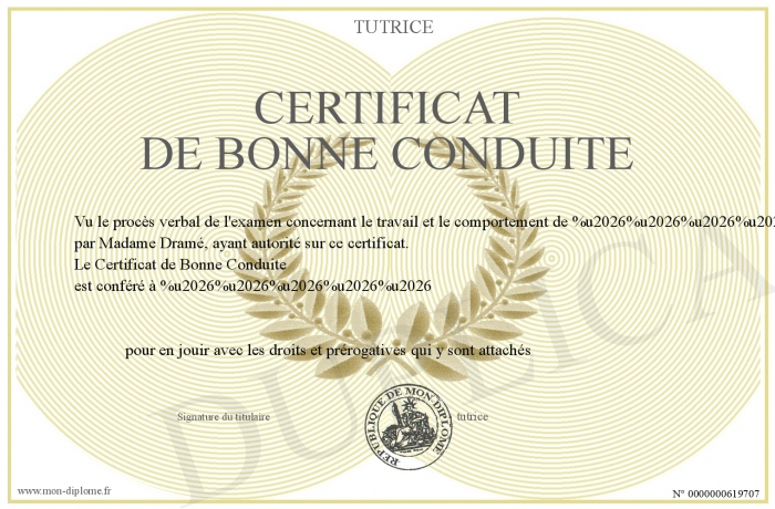 Envoyez par email votre Certificat de bonne conduite personalisé